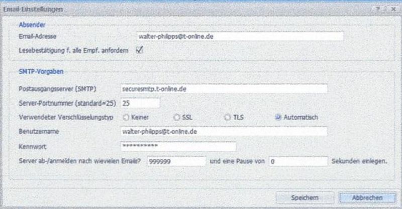 Auch die Agabe des Postausgangsserver ist korrekt.