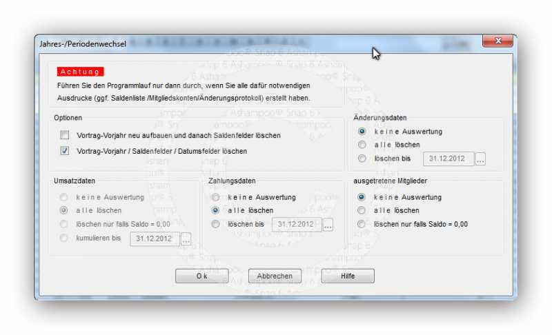Jetzt sollten die Mitgliedskonten nur noch die Umsätze des laufenden Jahres ausweisen.