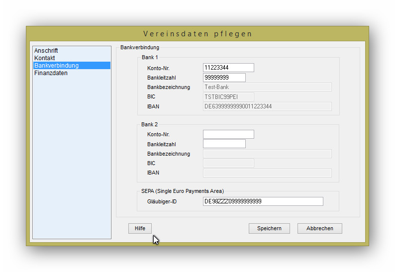 In SPG-Verein müssen Sie in den Stammdaten- Bankverbindung Ihre zweite Bankverbindung eingeben.