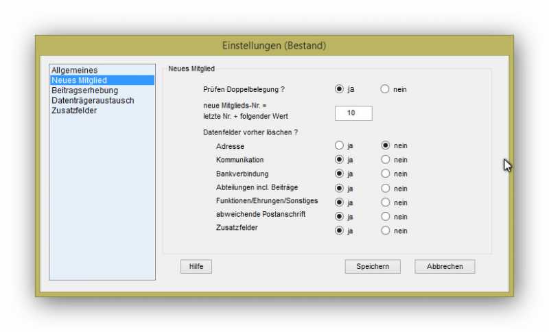 Oder, gibt es vielleicht eine Einstellung die Kontodaten bei Mitglied-Neu zu übernehmen und die Mandatsref zu löschen?