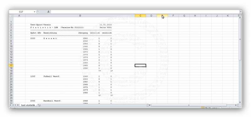 ich muss für den LSB NRW und den FLVW (Fußballverband Westfalen) die Jahresstatistik machen. Dazu 2 Fragen: