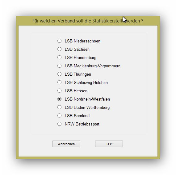 Die Statistik für die Sportverbände finden Sie unter "Extra-Verbandsmeldungen". Siehe Anhang.