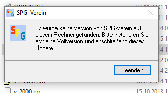 1. SetUp-SPG-Verein-upd.exe augeführt. Dabei kommt die Meldung SPG sei nicht installiert ;) (siehe Anhang)