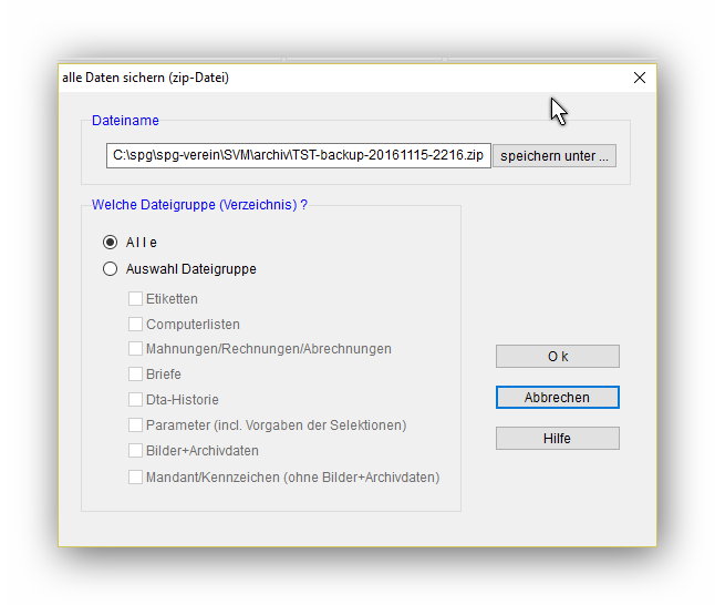 wenn Ihnen das Programm mitteilt, dass die Datensicherungs-Zipdatei erstellt wurde, dann stimmt dies auch.