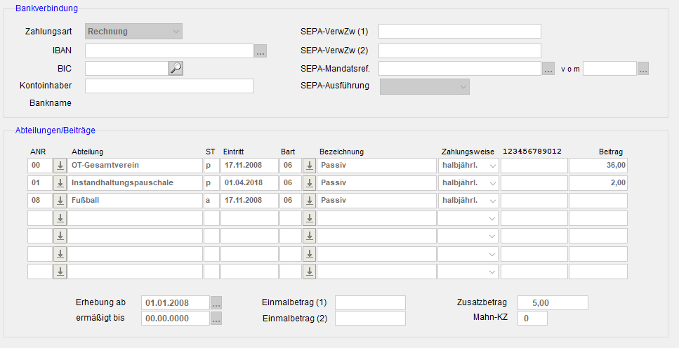 Wir haben einen Grundbeitrag (00 - Gesamtverein) und eine vorübergehende Instandhaltungspauschale ( 01 - Instandhaltung).