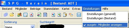 Leider merkt sich das Programm die Auswahl nicht dauerhaft, nach einem Neustart des Programms ist der Optionspunkt wieder angehäkelt, d.h. ausgetr. Mitglieder werden angezeigt.