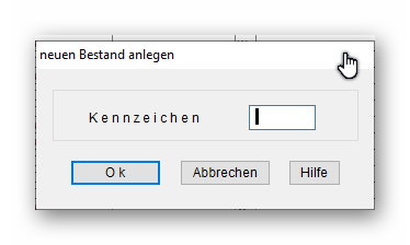 Gehen Sie auf "Bestand-Neu", jetzt geben Sie die drei Buchstaben Ihres Vereins ein (siehe Anhang 1), bestätigen Sie mit "OK"; es erscheint das Bild von Anhang 2, dies nur mit "Speichern" bestätigen, es sind keine Eingaben notwendig.