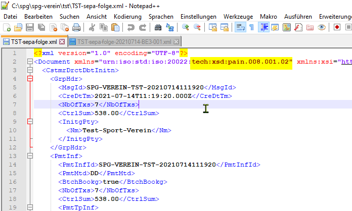 Frage: Welche SEPA - Nachrichtenversion wird hier genutzt?