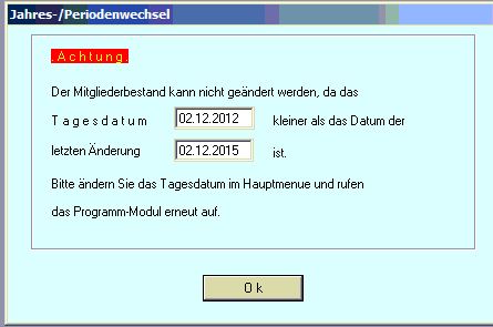 nachdem der PC aus irgendeinem Grund ein falsches Datum im BIOS eingetragen hatte, genauer Dezember 2015 und dies nicht sofort aufgefallen war, können nun die Mitgliederdaten nicht mehr geändert werden.