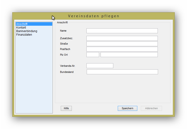 Alle Angaben zum Verein brauchen nicht gefüllt werden, schließen Sie mit speichern ab.(Bild 1) Sie haben jetzt den Bildschirm ohne Daten (Bild 2)