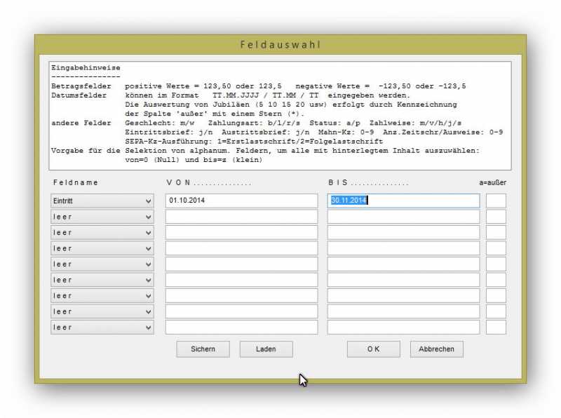 Das heißt ich will nur 10 Vereinsmitglieder bei der Beitragserhebung erfassen.