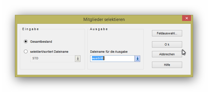 Über "Mitglieder-Mitgl. selektieren-alle", in dem 2. Bild setzen Sie für "austritt" "einmalbetrag" ein, in der Feldauswahl wird der Zeitraum für "Eintritt" so gewählt, dass Sie alle Mitglieder mit dem "Einmalbetrag" erfassen.
