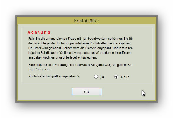 haben Sie bei allen Ausdrucken, bei denen am Schluss das in der Anlage gezeigte Bild erscheint, mit "Ja" geantwortet, werden diese Daten gelöscht.