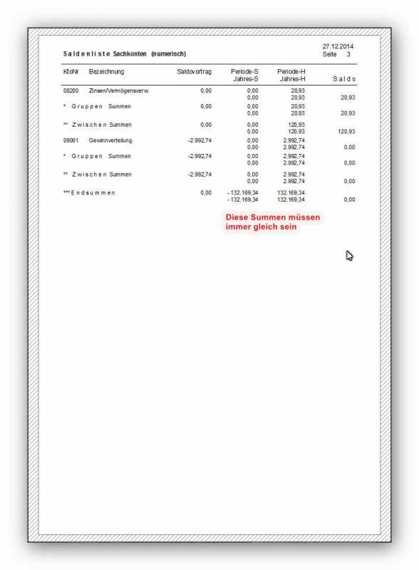 Überprüfen Sie die Saldenliste, ob die Endsummen gleich sind.