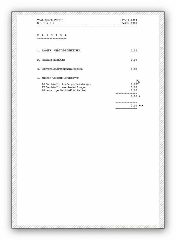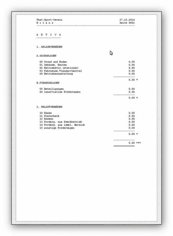 Die Beispiele stammen aus dem Testverein, hier ist alles auf "Null" weil keine Buchungen vorhanden sind.