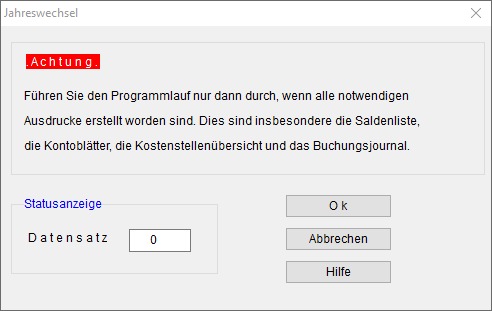 Zum "Jahreswechsel" sind die im 1. Anhang genannten Listen zu erstellen. In der Summe- und Saldenliste sind die Endwerte der "Hauptbuchkonten" ersichtlich.