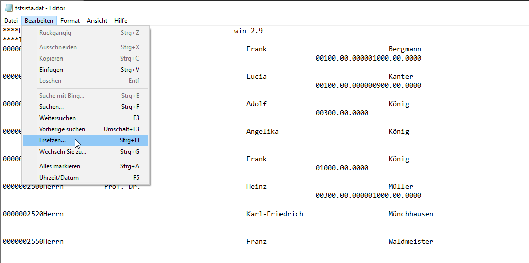 Öffnen Sie nun diese Datei mit einem beliebigem Editor und bearbeiten die Datei über "bearbeiten" > "Ersetzen".