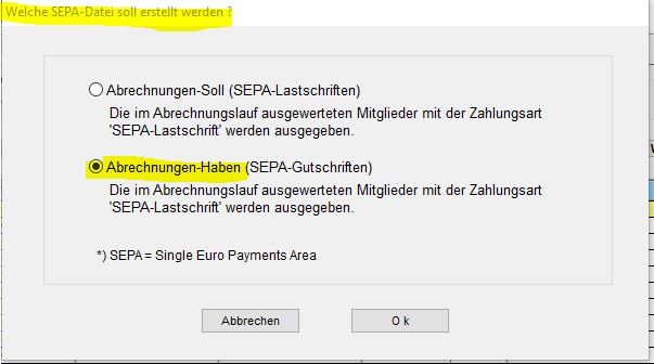 Nachdem ein Original-Abrechnungslauf über die entsprechende Abrechnungsdatei durchgeführt wurde, muss eine SEPA-Gutschriftdatei erstellt werden.