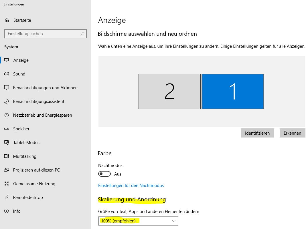 Über die Windows-Anzeige-Einstellungen hat man die Möglichkeit, auf die Anzeige Einfluß zu nehmen.