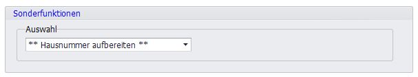 Wählen Sie dort unter "Sonderfunktionen" die Option "** Hausnummer aufbereiten **" aus und starten diese Funktion mit einem Klick auf "OK".