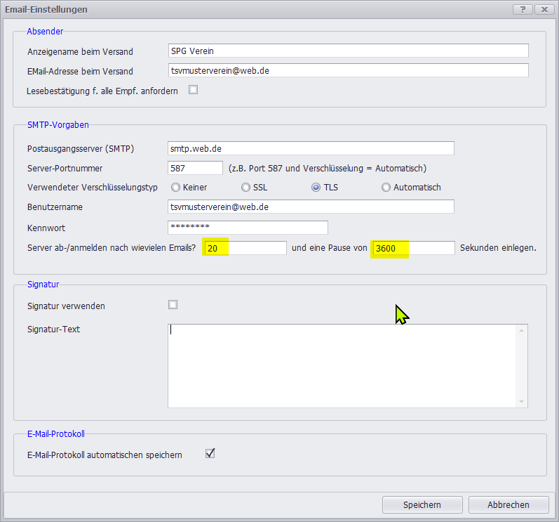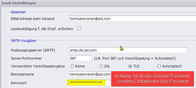 In SPG-Verein 4 müssen Sie dann in den E-Mail-Einstellungen bei dem Passwort das App-Passwort eintragen.