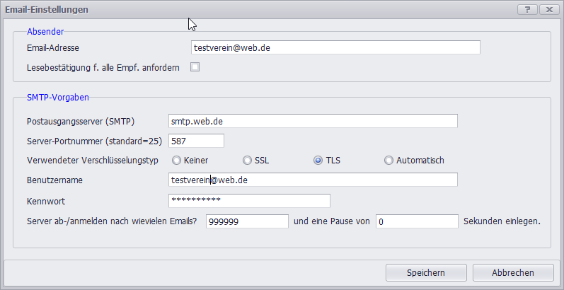 Um mit SPG-Verein Mails versenden zu können, müssen unter Einstellungen/E-Mail die Verbindungsdaten zum sogenannten SMTP-Server korrekt eingetragen werden. Hier werden wir ein paar Beispiele für die unterschiedlichen Provider nennen.
