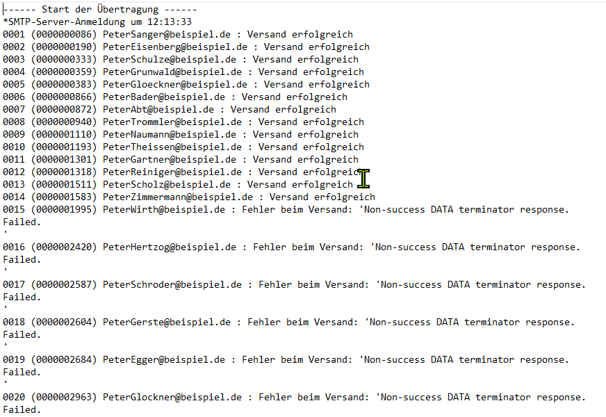 ACHTUNG: IONOS erlaubt nur noch 20 Mails pro Anmeldung. Daher nach 20 Mails trennen, 10 Sekunden warten und dann die nächsten 20 Mails versenden.