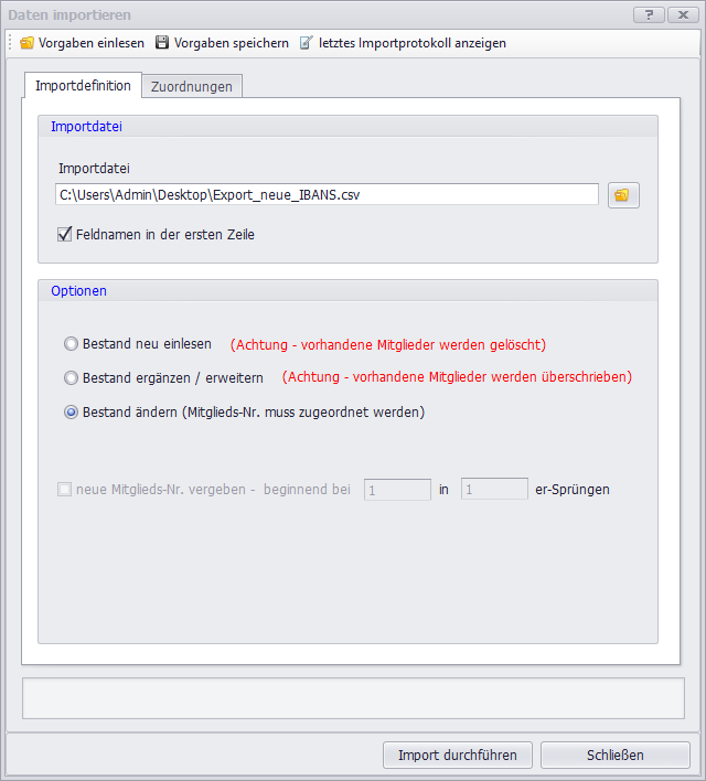 Jetzt kann der Import durchgeführt werden. Die Bankverbindungen der Mitglieder sind nun aktualisiert.