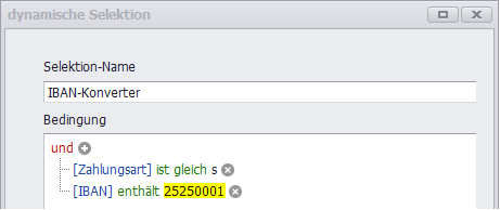 (Bei "IBAN enthält" ist die alte BLZ der fusionierenden Bank einzutragen)