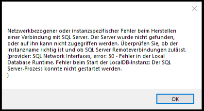 Problem: SPG-Verein 4 kann nicht gestartet werden, da ein Fehler beim Start der LocalDB Instanz auftritt: