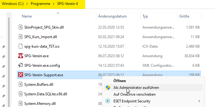 Probieren Sie jetzt noch einmal SPG-Verein 4 zu starten.