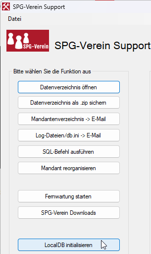 Im Support-Tool klicken Sie bitte auf den Button "LocalDB initialisieren"