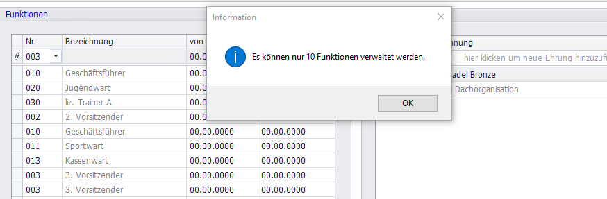 Die Karteikarten werden in SPG-Verein 4 nicht mehr integriert. Zukünftig sollen bei Funktionen und Ehrungen die 10er Grenze aufgehoben werden.