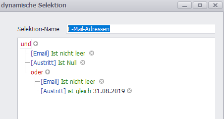 ich möchte selektieren und zwar alle (Mitglieder mit einer E-Mail-Adresse und Austrittsdatum = 0) oder (alle Mitglieder mit E-Mail-Adresse und Austrittsdatum = 31.08.2019)