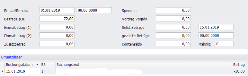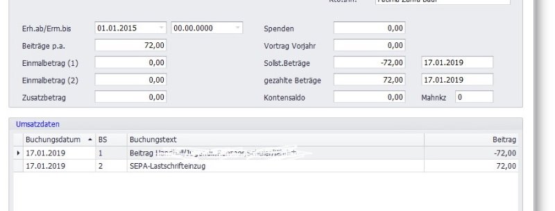 kann es sein, dass im Beitragslauf der Version 4 irgendwas gründlich schief läuft? Im angehängten Screenshot ist das Ergebnis eines Beitragslaufs zu sehen. Es gibt eine Buchung auf dem Konto, aber weder die Sollstellung noch der Saldo wurden aktualisiert.