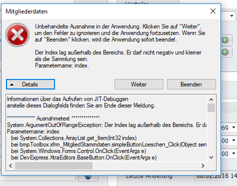 Fehler und Programmabsturz nach dem Löschen von Mitgliedern