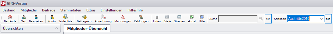 1. Nach Doppelklick auf das Icon dauert es 7Sekunden bis zum Fenster "SPG wird gestartet", nach 22 Sekunden "Bestand auswählen" , nach Klick auf "Auswählen" erscheint die "Mitgliederübersicht"