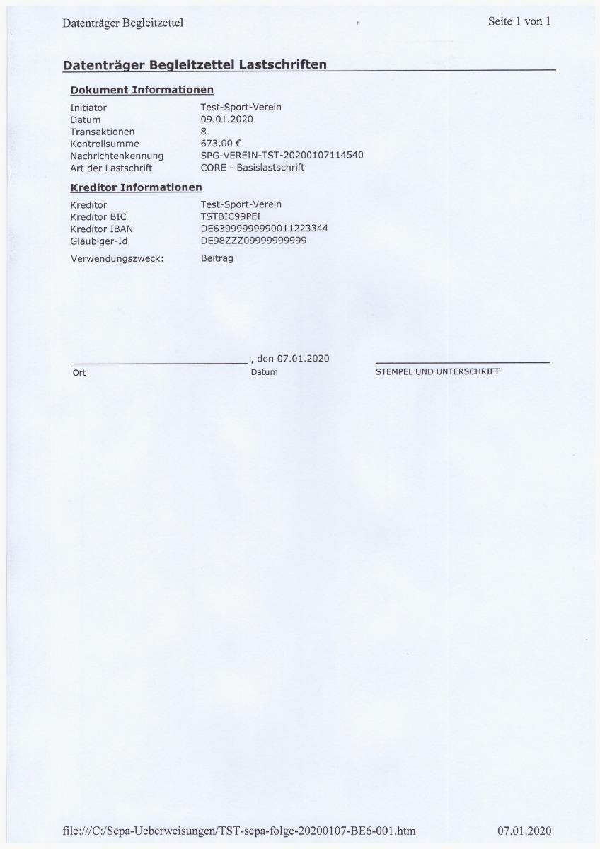 Auf dem Begleitzettel aus der DTAUS-Verwaltung heraus wird auch der Dateiname ausgegeben.