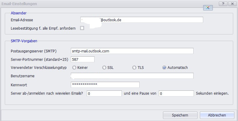 als Mailprogramm verwende ich outlook (Einstellungen siehe Anhang)