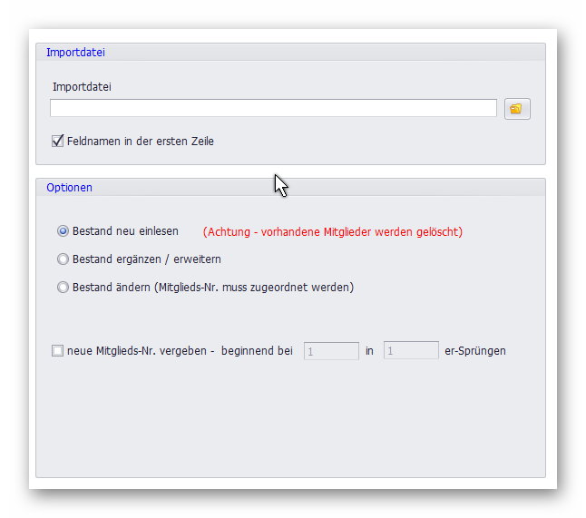Ich habe einen Datenexport mit selektierten Mitgliedern (Ausgetretene) erstellt. Nun sollten einige Mitglieder durch einen Import wieder hergestellt werden.