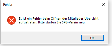 beim Öffnen einer Mitglieder-Übersicht erscheint die Meldung im Anhang. Auch nach Neustart von SPG4 wiederholt sich die Meldung. Es gibt auch keinen Hinweis darauf, um welchen Fehler es sich handelt