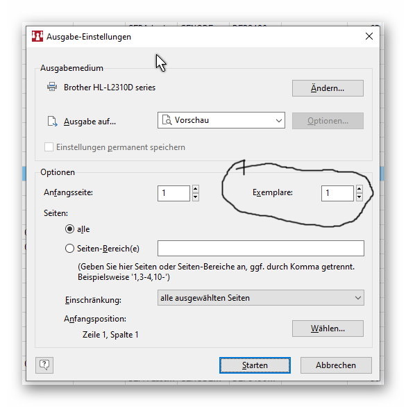 Eine Selktionsdatei mehrfach drucken