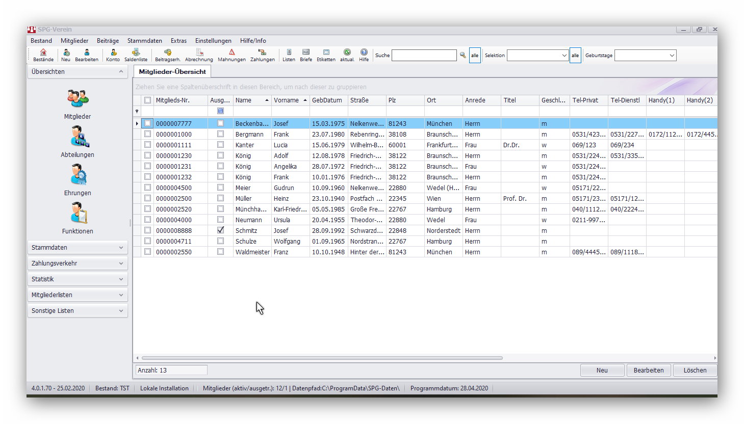 Falls Sie mit Bestand den zu bearbeitenden Mandanten meinen, steht dieser links unten. (siehe Anhang)