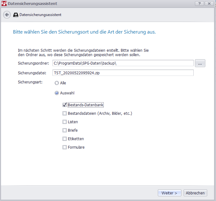 Nach einer Datensicherung habe ich die SPG-Datei (*.zip) an Outlook gehängt und wollte sie versenden.