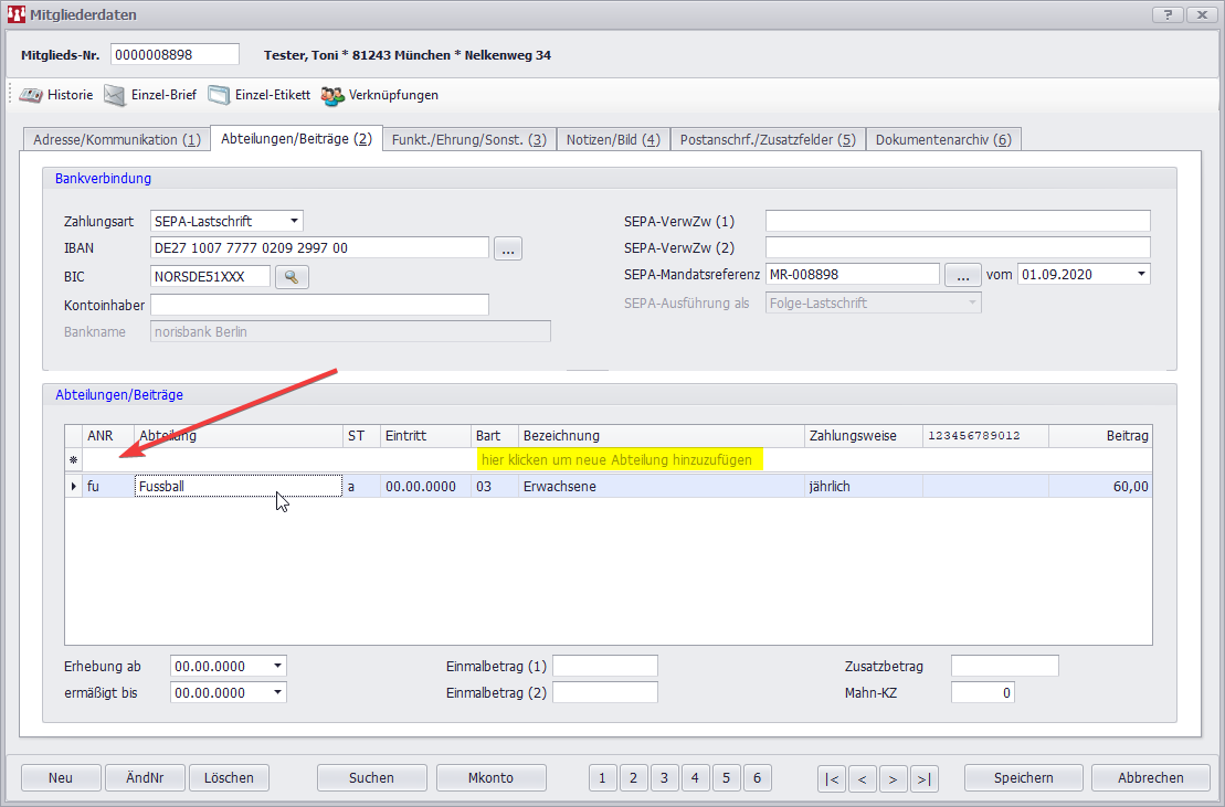 2 Zeilen Mitgliedsbeitrag unter Abteilung/Beiträge
