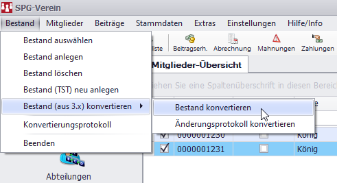 Nach der Übernahme auf einen neuen Rechner von SpG 3 auf SPG 4 sind zwar alle Mitglieder übertragen worden, allerdings keine Abteilungen und somit auch keine Zuordnung der Mitglieder und keine Beiträge. Wie kann ich das Problem beheben?