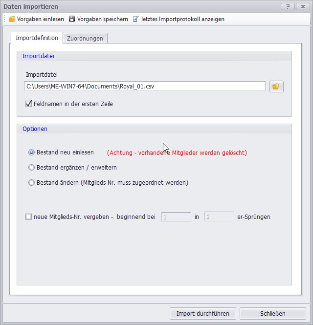 ich bin als neuer Nutzer gerade dabei unsere Mitgliedsdaten in die Anwendung zu importieren. Dabei habe ich auch schon viel gelernt, wie die individuelle Verwendung der Zusatzfelder. Allerdings konnte ich ein generelles Problem noch nicht lösen und leider habe ich auch keinen Beitrag dazu hier im Forum gefunden.