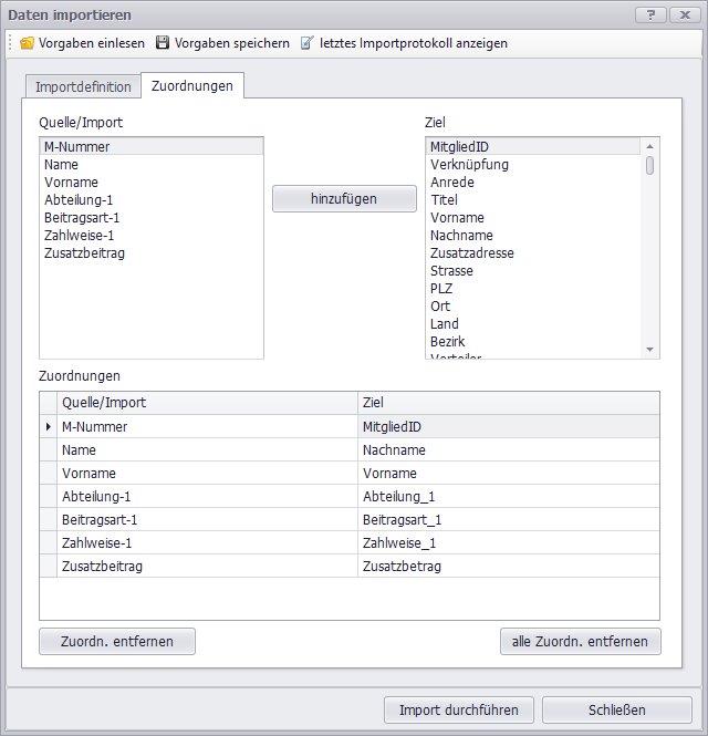 In meiner Importdatei habe ich die Felder "Mitgliedsart" sowie "Beitrag" dementsprechend gefüllt.
