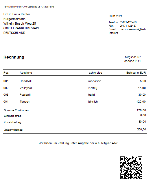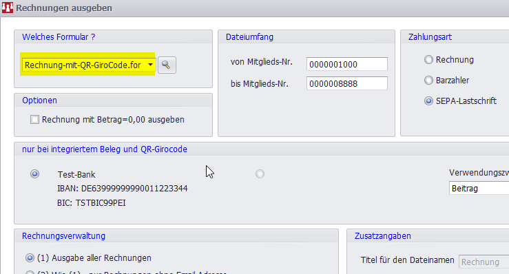 Der Girocode wird nur richtig gefüllt, wenn der Brief über Beiträge/Beitragsverfahren/(3) Rechnungen ausgeben erzeugt wird.
