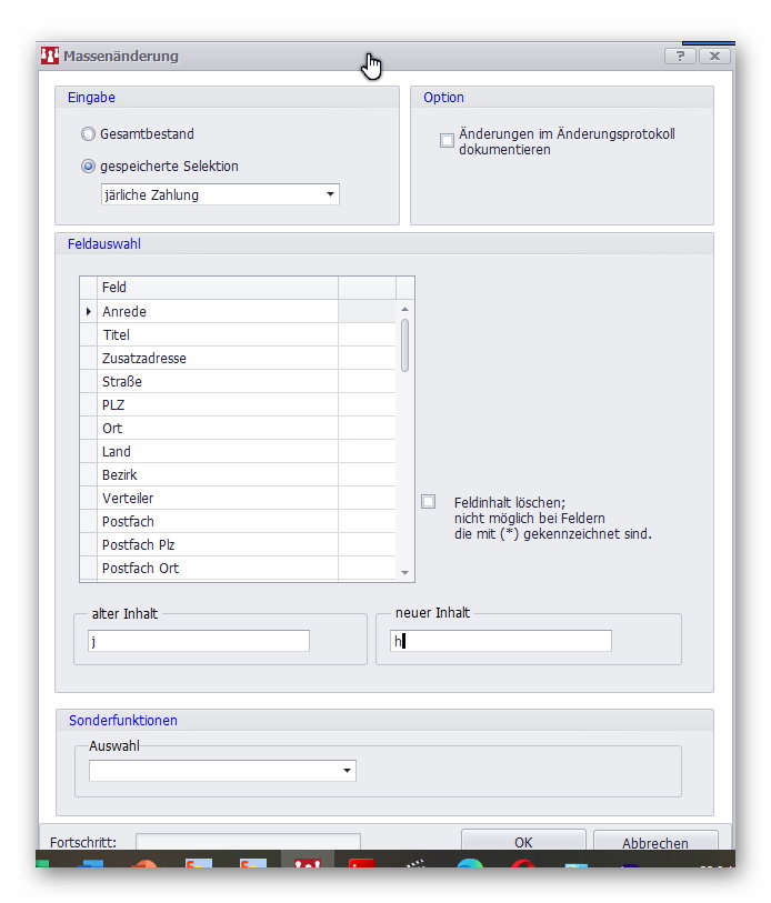 Jetzt können Sie aus dieser Selektion auch die Massenänderung machen.